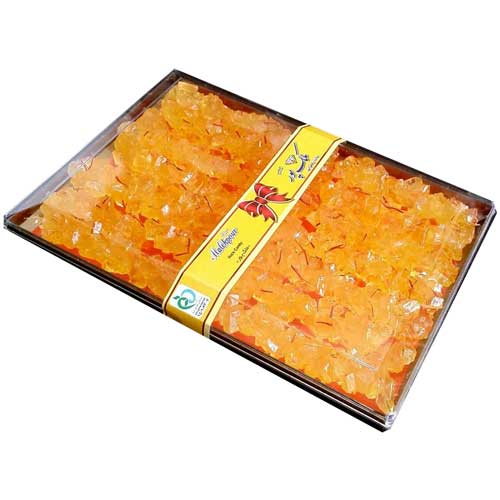 این نبات در بسته های 600 گرمی ارائه می شود. عصاره خاص زعفران همراه با سرگل ممتاز آن در نبات شاخه ای کریستالی زیبایی آن را دوچندان می کند.