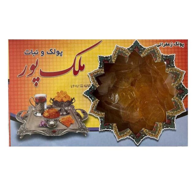 این محصول یکی از گزینه های پرفروش برای سوغات، هدیه و پذیرایی های شماست. پولکی زعفرانی از مواد اولیه ی مرغوب و زعفران اصل و درجه یک درست شده است. پولکی زعفرانی ملک پور در بسته های 370 و 500 گرمی قابل فروش به مشتریان عزیز می باشد.
